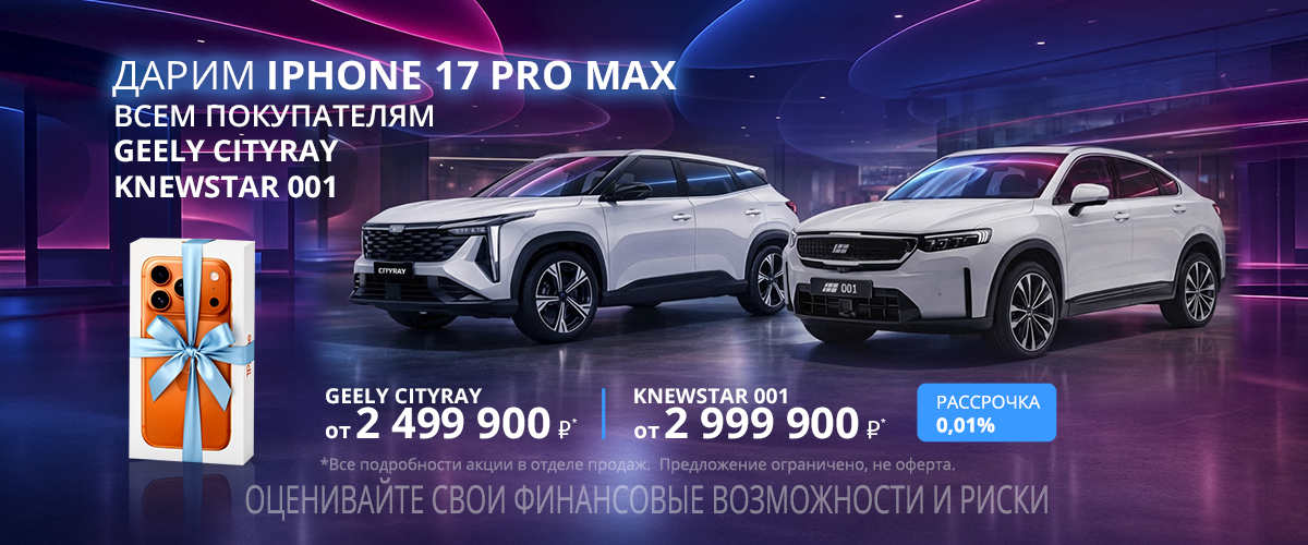 Оформите договор купли-продажи любого из этих автомобилей до 31 января 2026 года — и получите в подарок новейший смартфон Apple iPhone 17 Pro Max!