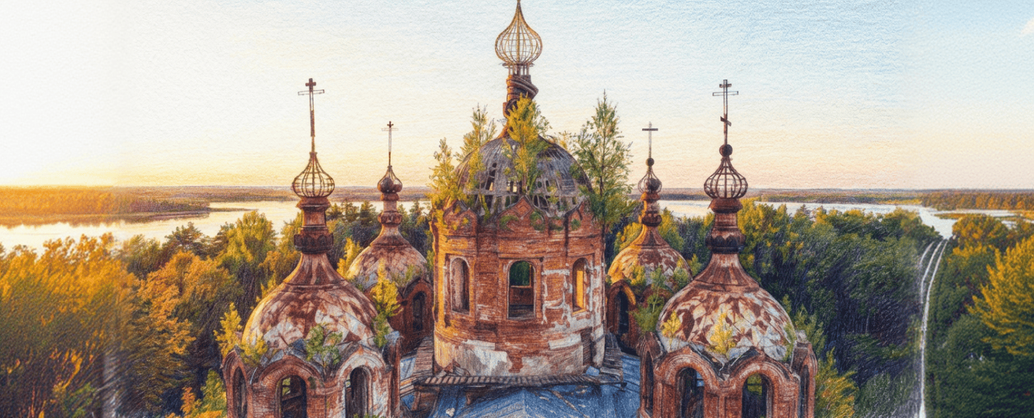 Внутри собора интересны мраморные детали иконостаса и ажурные чугунные решетки на окнах. Длинный путь через труднопроходимые болота до сих пор бережет их от расхищения. На крыше собора растут деревья, на некоторых луковках сохранились кресты.