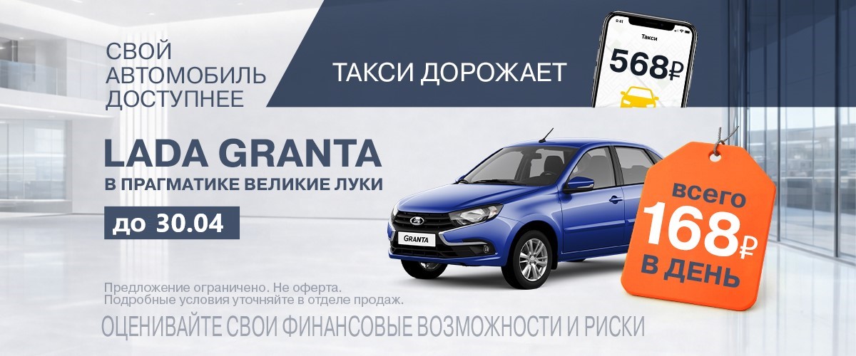 Прагматика Великие Луки - LADA Granta может стать вашей меньше, чем стоимость пары чашек утреннего кофе или одной поездки на такси