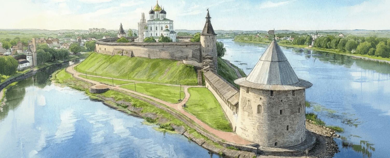 - Псковский Кремль – это восьмиметровое белокаменное сооружение обязательно нужно увидеть любому гостю города. Его площадь составляет 3 гектара (!), и включает в себя многие исторические памятники – от приказных палат до знаменитого Троицкого собора.