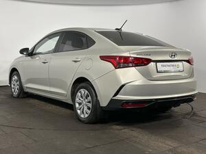 Hyundai Solaris II Рестайлинг 2020 года — это седан с автоматической коробкой передач и бензиновым двигателем объёмом 1,6 литра и мощностью 123 лошадиные силы. Серый кузов придаёт автомобилю лаконичный и сдержанный вид, что делает его подходящим как для городских поездок, так и для путешествий за город.